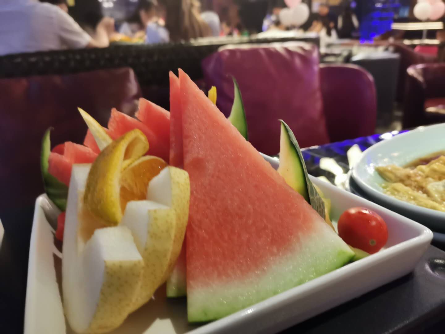 回酒店修整了一会后,晚上乘地铁去了金湖广场。本打算在地王云顶上看南宁的夜色,却在地王大厦五层的温菲派对餐吧待到了午夜,吃过了脆皮鸡和黑腐竹,就着果盘,开了一瓶免费的廉价红酒,玩骰子喝到微醺。我来粤很久未醉了,或是朋友不想喝,或是自己不愿喝,微醺是难得好的人生体验,处于将醉未醉,意识尚清醒,身体又些许飘忽。但这种飘忽也容易犯错,比如我为了解酒点了一份六十八的果盘。
